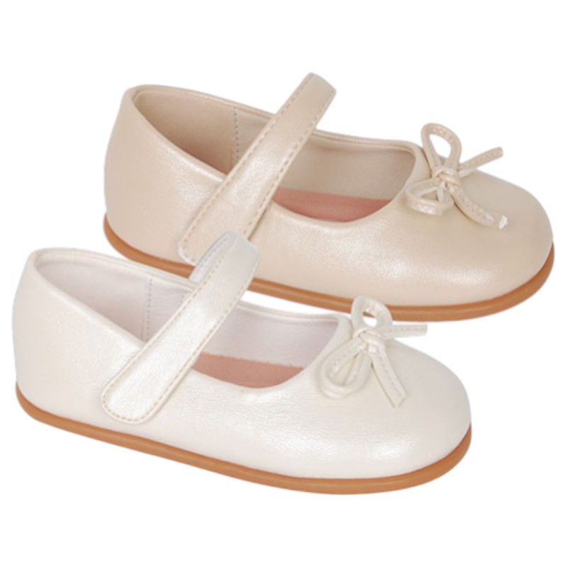 Podrás encontrar los zapatos niña en color beige o blanco, adornadas con un precioso lazo en el empeine que hará que te enamores de ellos nada más verlos.