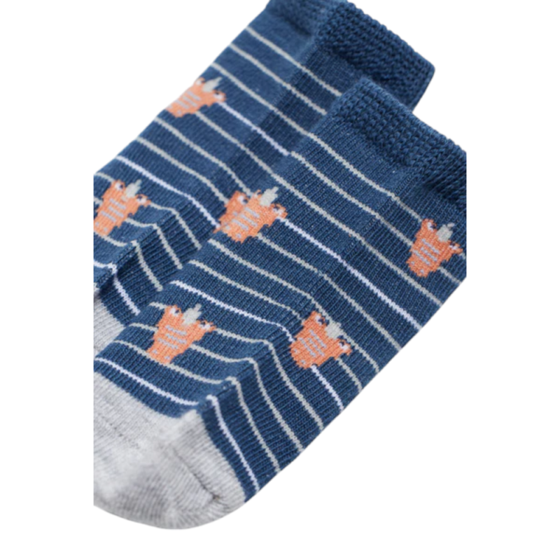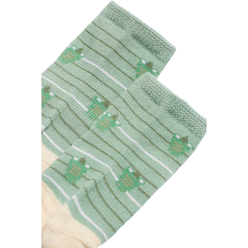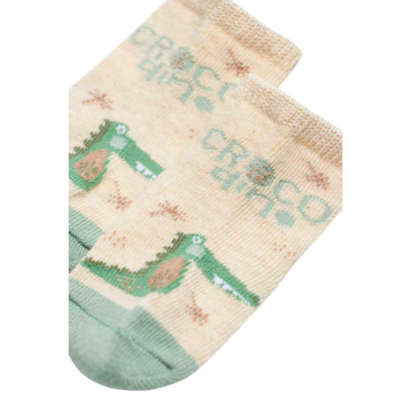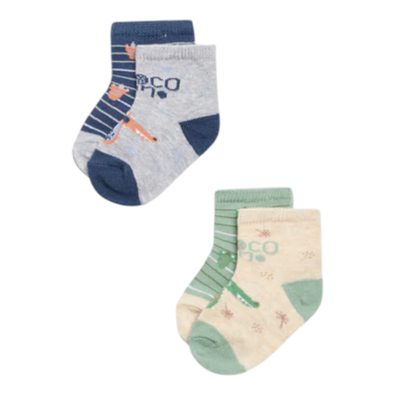 Pack de 2 calcetines para bebé tejido en algodón de gran calidad, con un diseño muy bonito e infantil de dinosaurios en colores suaves que gustan mucho puestos en los piececitos del bebé.