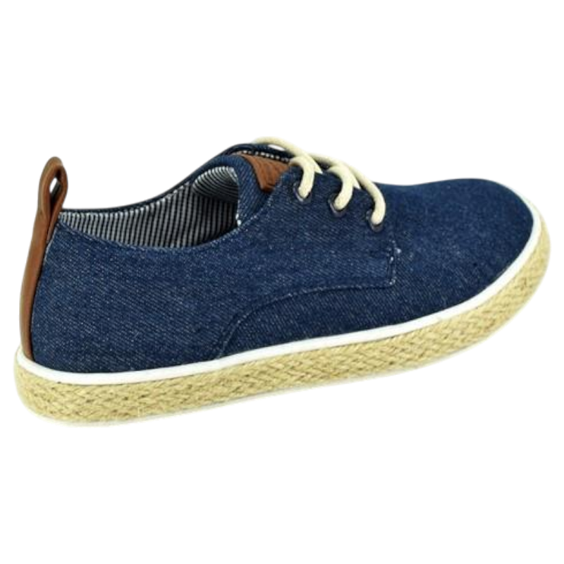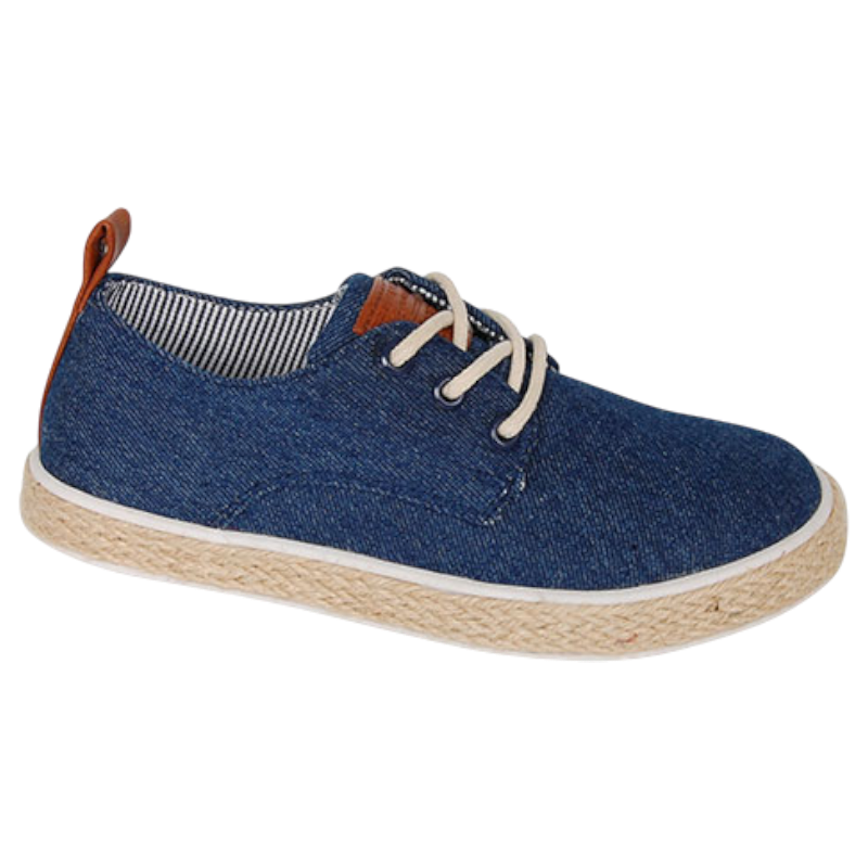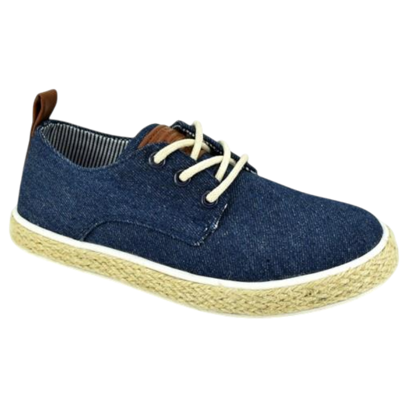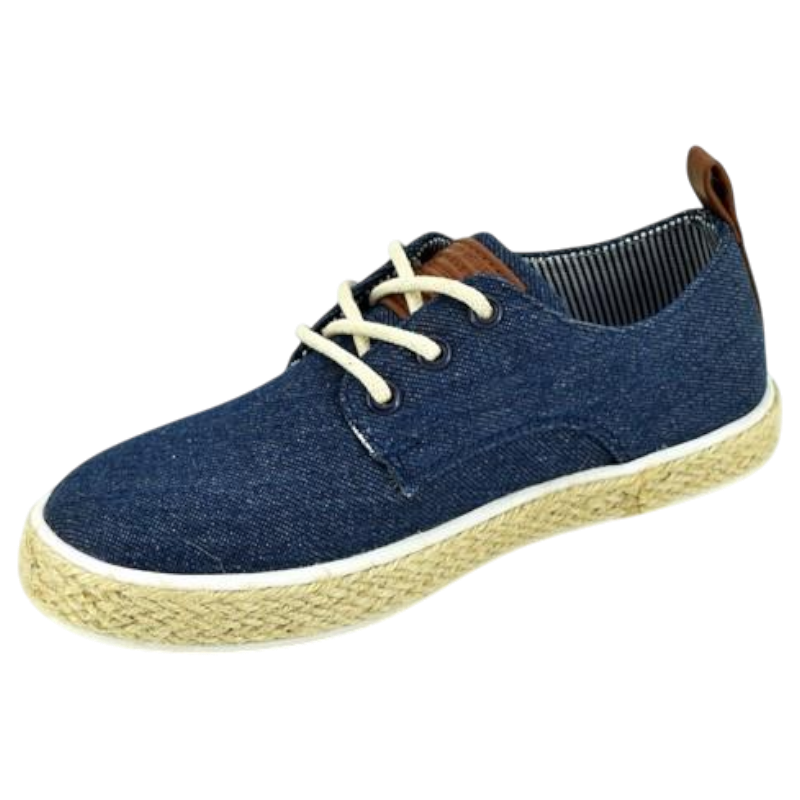 Zapatos nautico niño de lona en tejido lona con un diseño moderno y la suela ribeteada con esparto, para que destaque aún más este genial nautico niño de lona.
