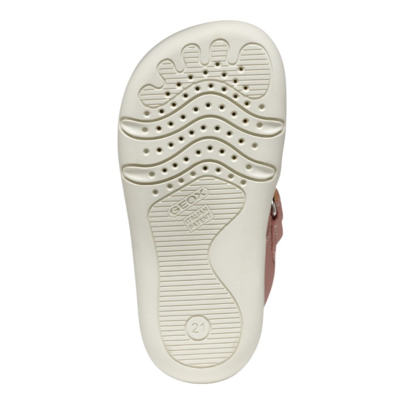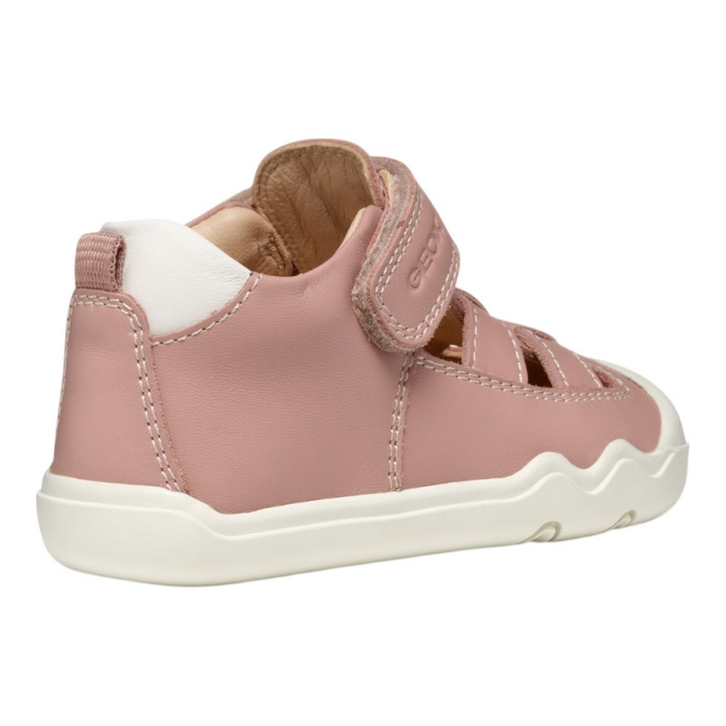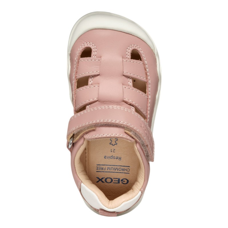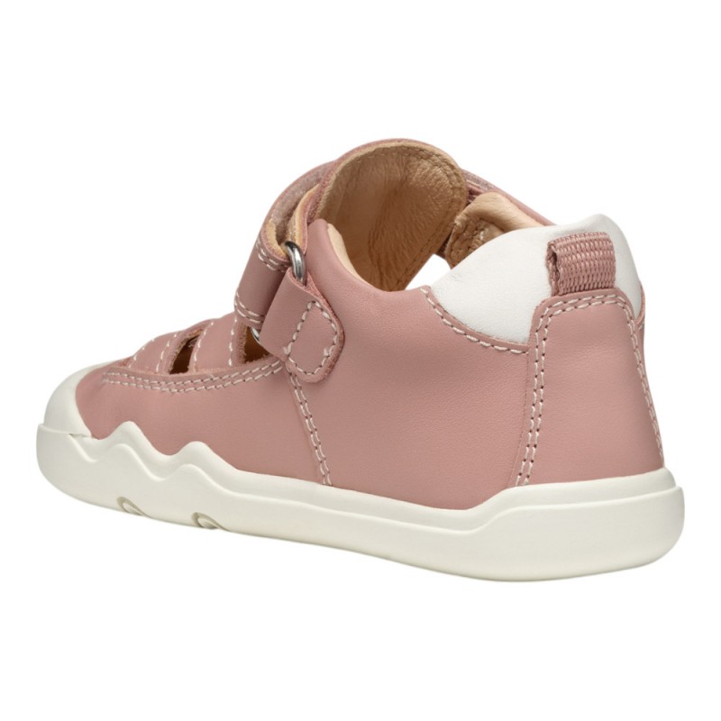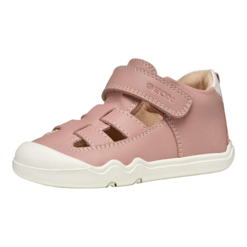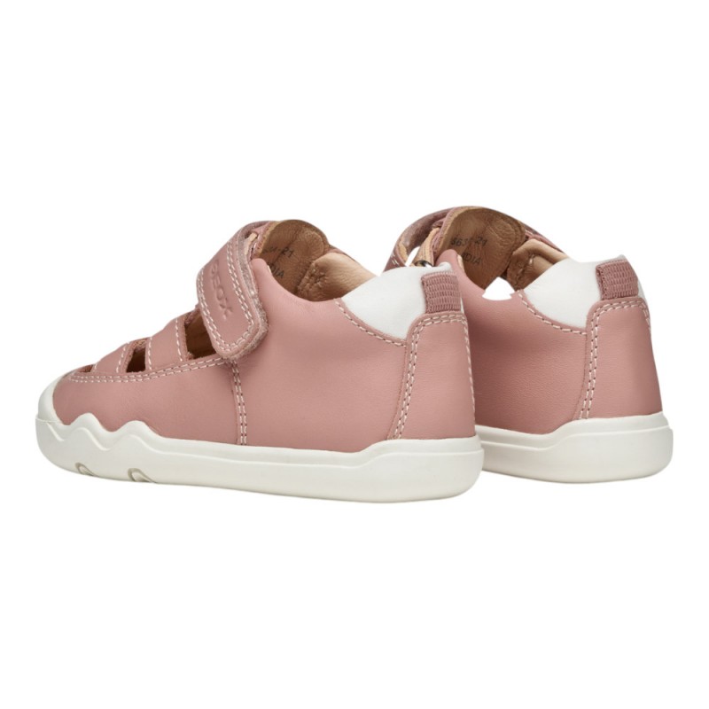 Preciosas sandalias respetuosas niña de la marca Geox con un diseño moderno a la vez de casual en color rosa maquillaje con la suela en blanco, ideales para llevar en el día a día en el colegio o en la guardería de las más peques para que puedan jugar y disfrutar con un calzado respetuoso, cómodo y de calidad.