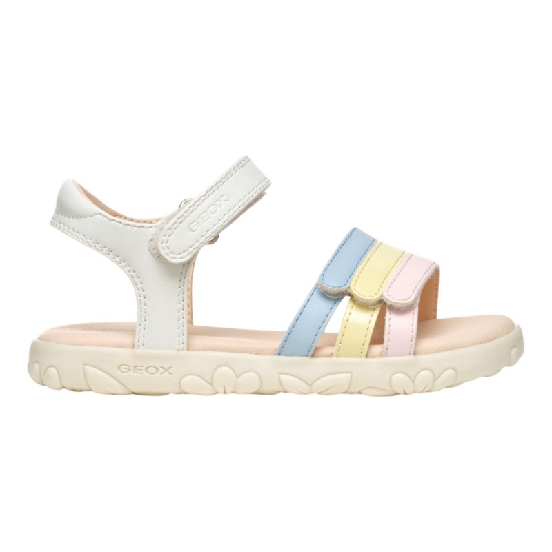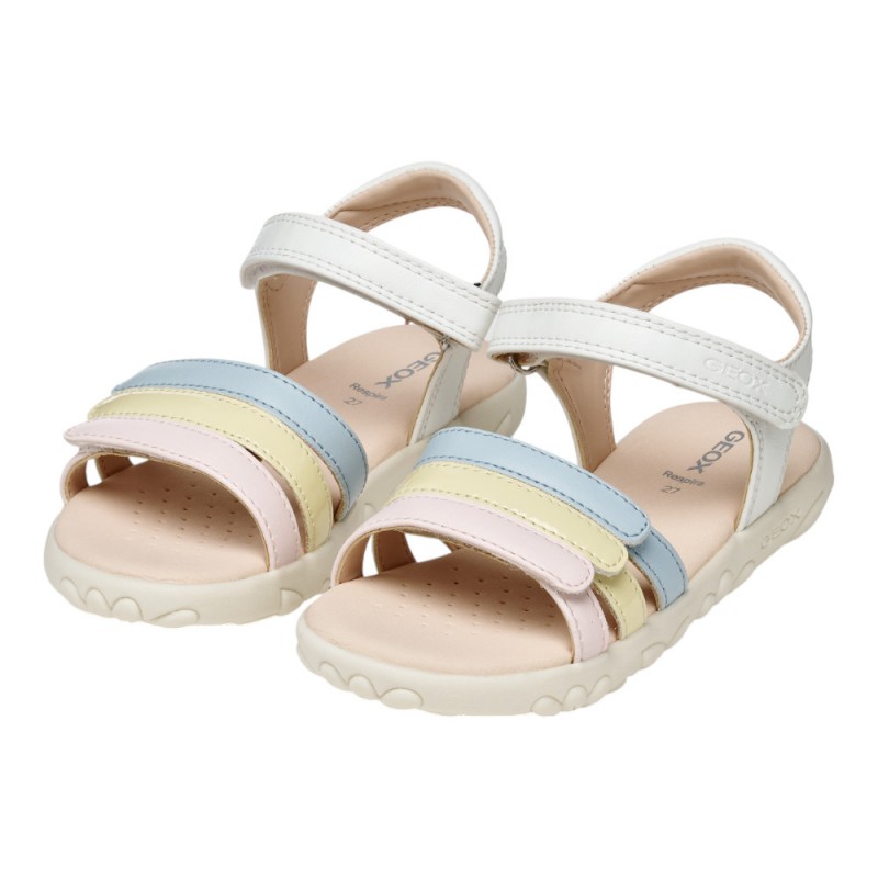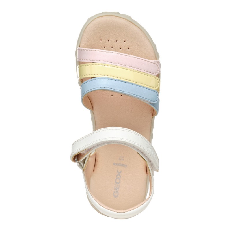 Estas sandalias niña de la marca Geox tienen un precioso diseño en color blanco con las cintas de colores de pastel, que les da un toque más alegre y veraniego a los looks.