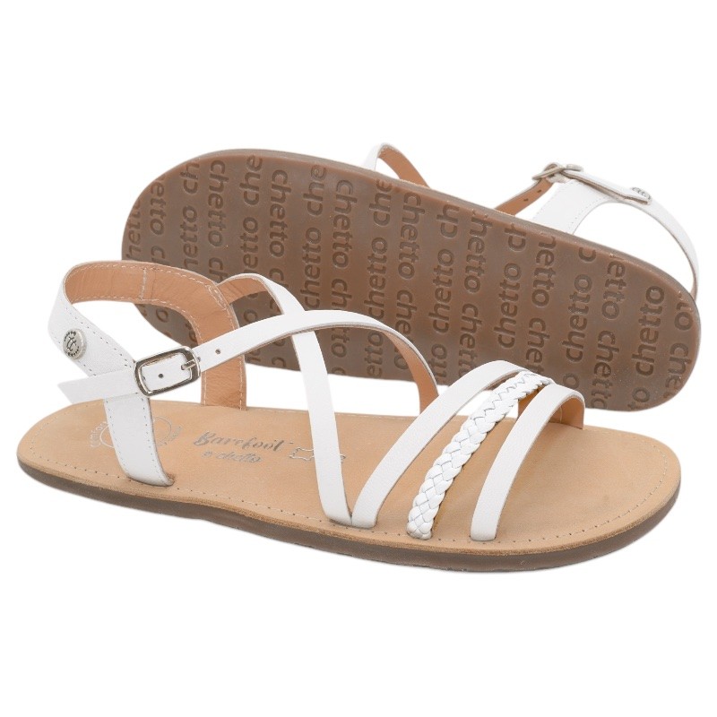 Preciosas sandalias respetuosas de la marca Chetto con un diseño único y muy a la moda en color blanco y oro con el detalle de las tiras, que le dan un toque elegante, ideales para darle un toque más arreglado a los looks.