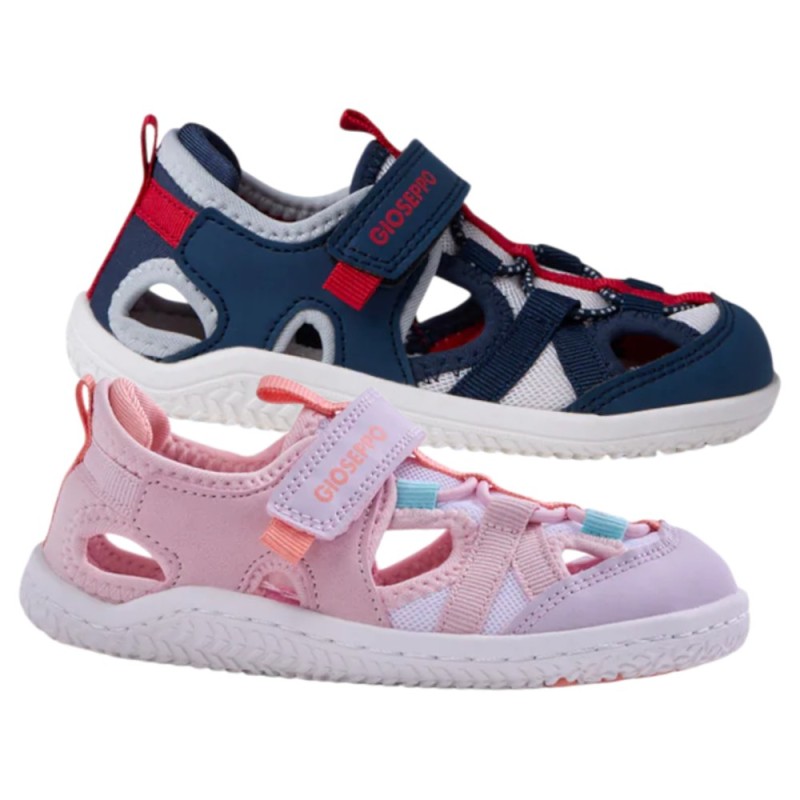 Fantásticas sandalias cangrejeras respetuosas Gioseppo en color rosa y azul marino, con un diseño moderno, sport y juvenil con rejilla, ideales para ir fresquitos esta temporada primavera-verano para los niños y niñas que están en pleno desarrollo y crecimiento, y para los cuales es muy importante un calzado infantil respetuoso como lo son estas sandalia respetuosas. Diseñadas siguiendo las tendencias minimalistas para garantizar la pisada natural.