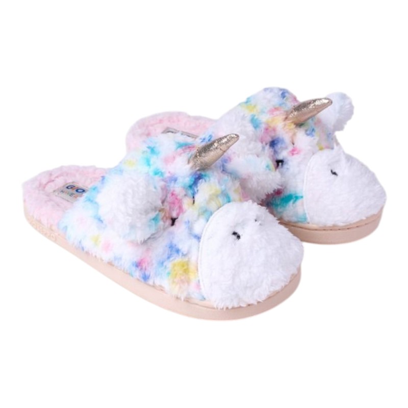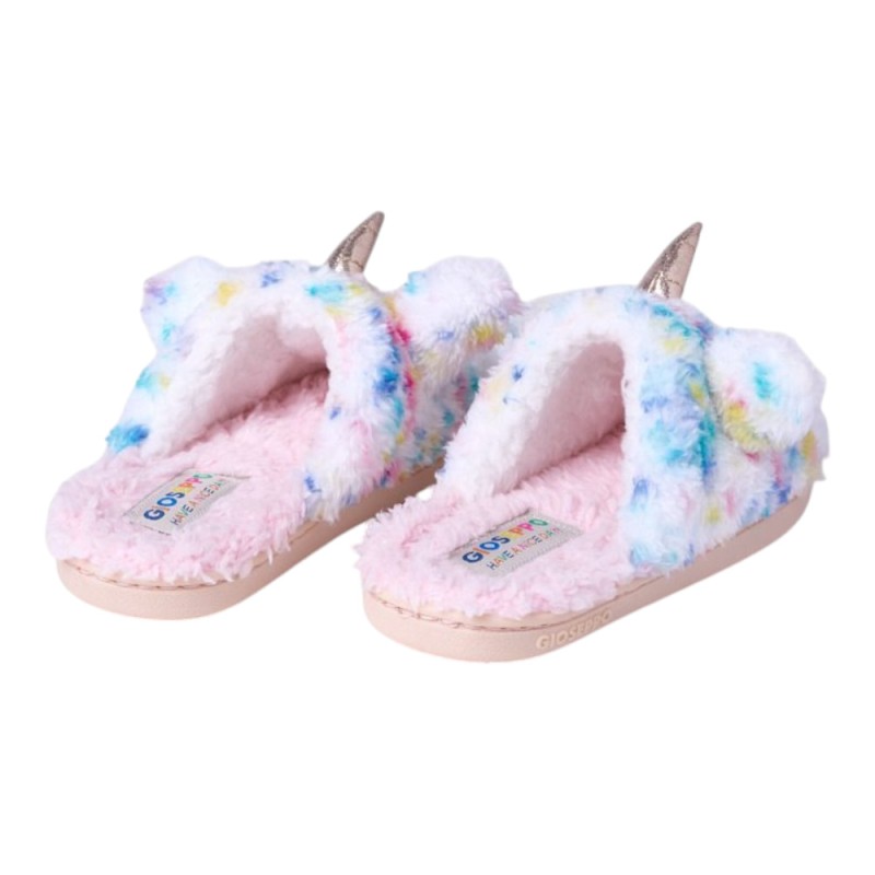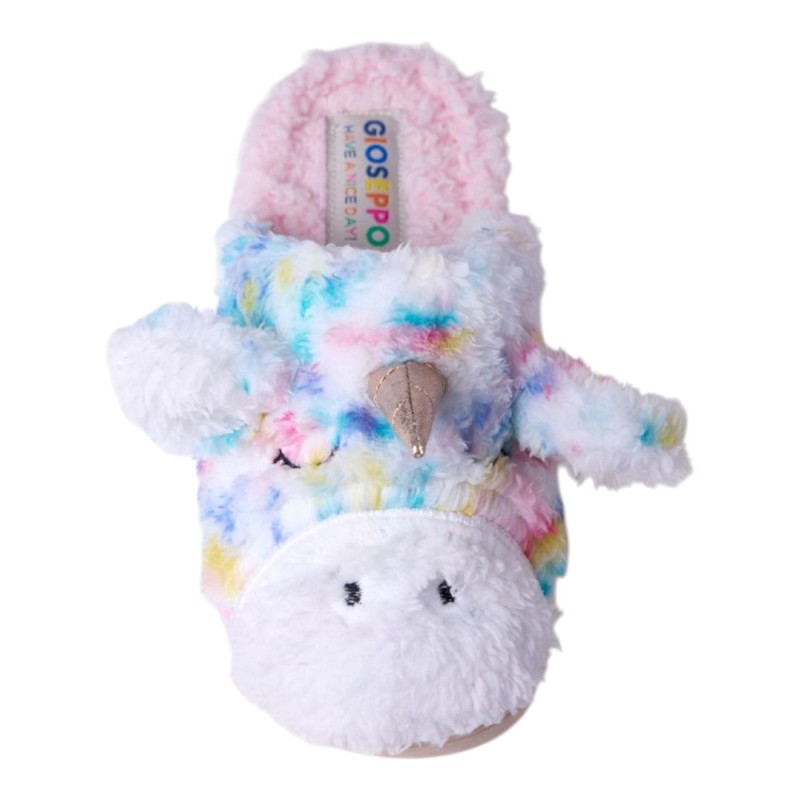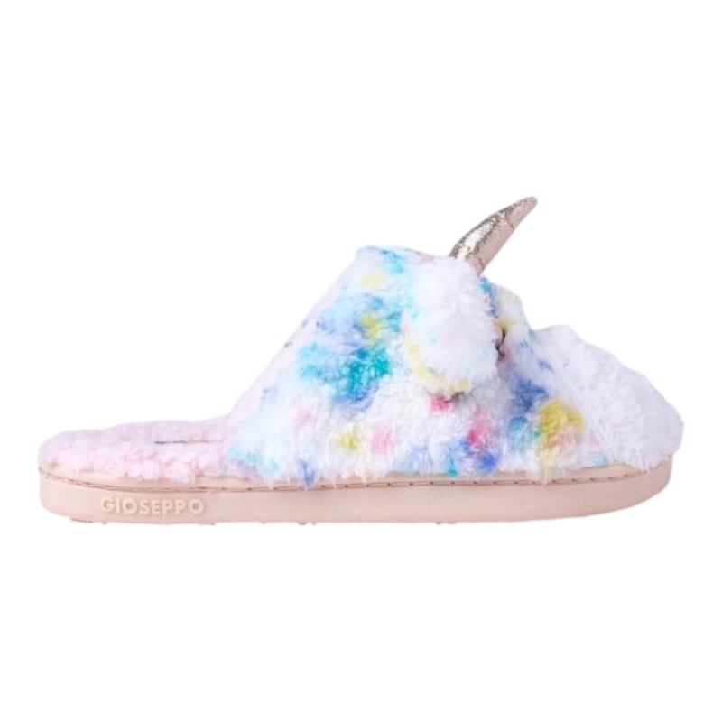 Zapatillas para estar por casa de la marca Gioseppo en multicolor con pelo y con un diseño muy divertido y bonito con el detalle del unicornio con el cuerno y las orejas, que las hacen muy cuquis y perfectas para no pasar frío esta temporada.