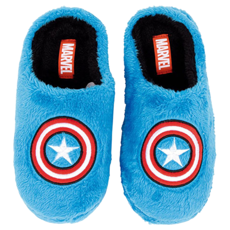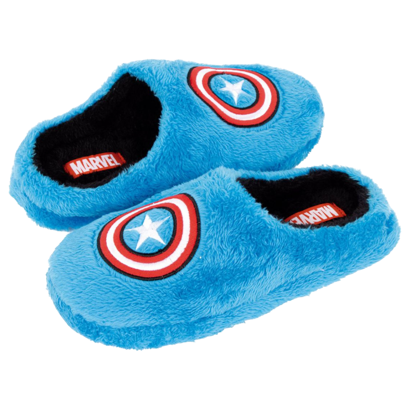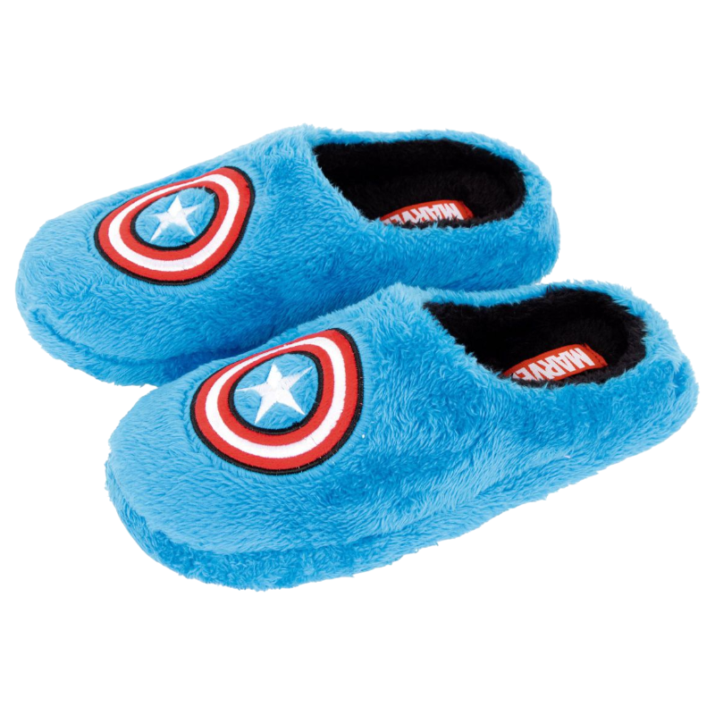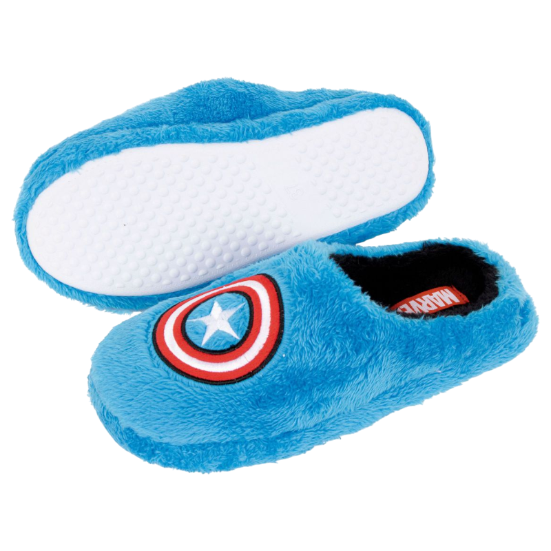 Zapatillas de estar por casa niño con un diseño de super heroe de capitán américa en tono azul que gusta mucho a los niños.