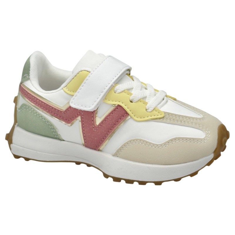 Zapatillas niña en color blanco, arena y una combinación de colores muy divertida, con un diseño casual y moderno, que les encantará usar para ir a la moda esta temporada.
