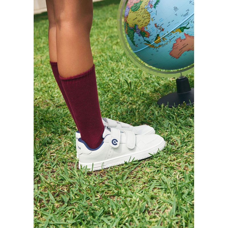 Zapatillas respetuosas de la marca Conguitos con un diseño sport, moderno y a la moda, muy cómodas y flexibles para el correcto desarrollo de los pies de los más peques. Están disponibles en blanco/azul marino, blanco/rosa y azul marino, colores muy versátiles e imprescindibles para su día a día para combinar con cualquier look tanto para ir al cole como para jugar y hacer deporte.