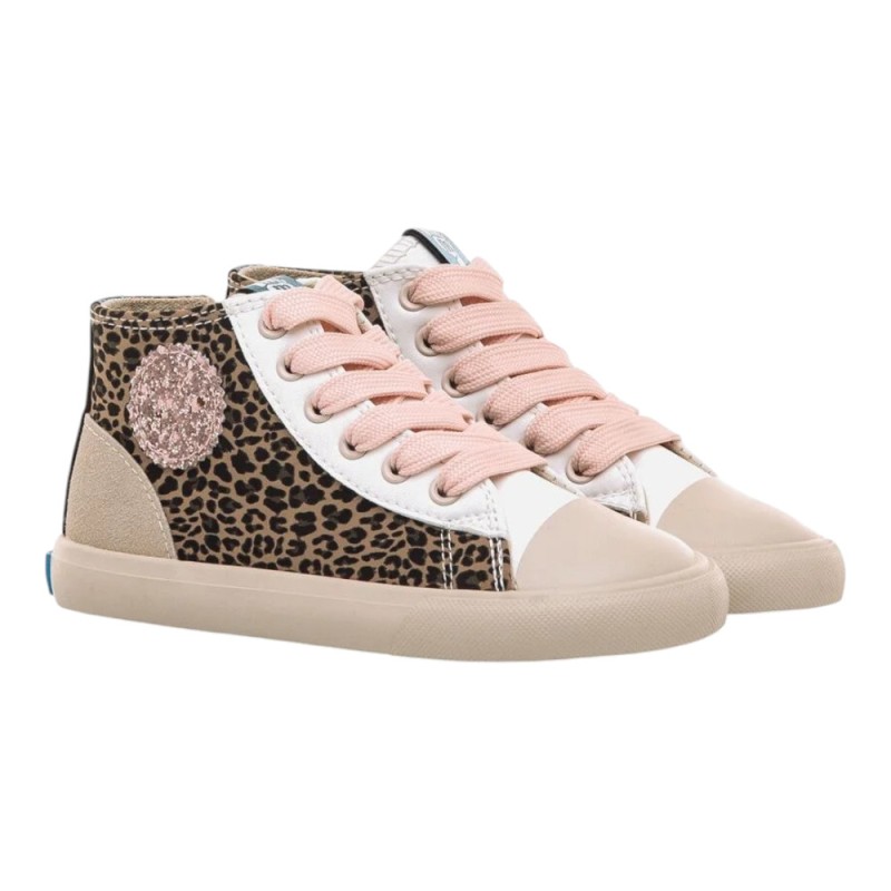 Estas zapatillas respetuosas tipo botín tienen un diseño atrevido y urbano de estampado de leopardo y el detalle en el lateral del parche con glitter y los cordones rosas, le dan más personalidad a los looks de tus peques. Por ello, son perfectas para combinar en cualquier look en el día a día, y creadas especialmente para esos pies de nuestras peques que desde pequeñas hasta mayores están en constante desarrollo.