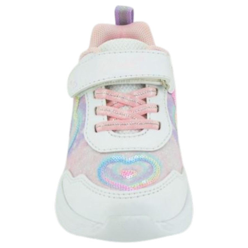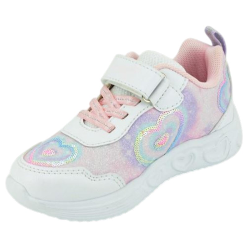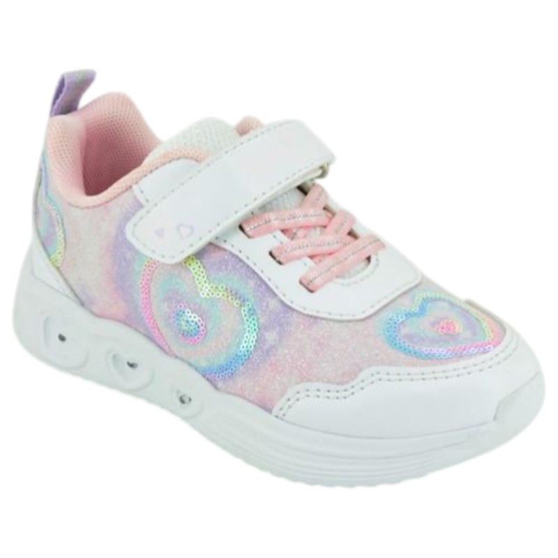 Zapatillas con luces niña con un diseño muy bonito y dulce de corazones con glitter en color rosa y en plata, que enamorarán a tu hija a primera vista. Además, con las luces led que incorpora en el lateral tu hija brillará vaya donde vaya con cada paso.