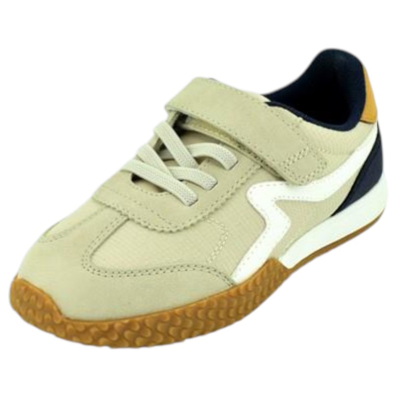 Zapatillas niño tipo casual con un diseño moderno y juvenil en color azul, kaki y arena, que le encantarán tanto a los más mayores como a los más pequeños.