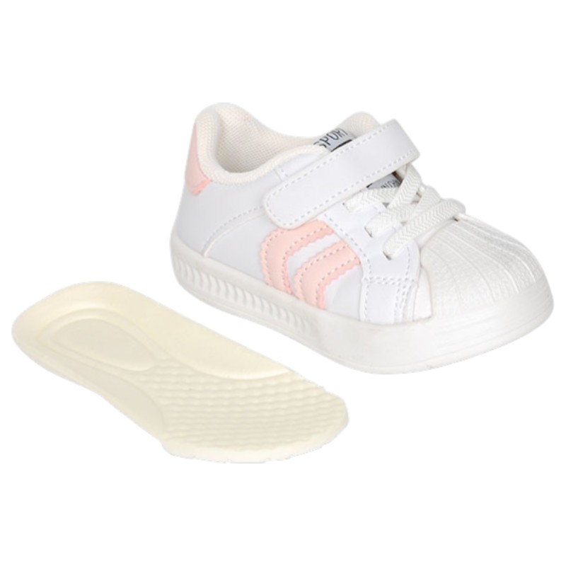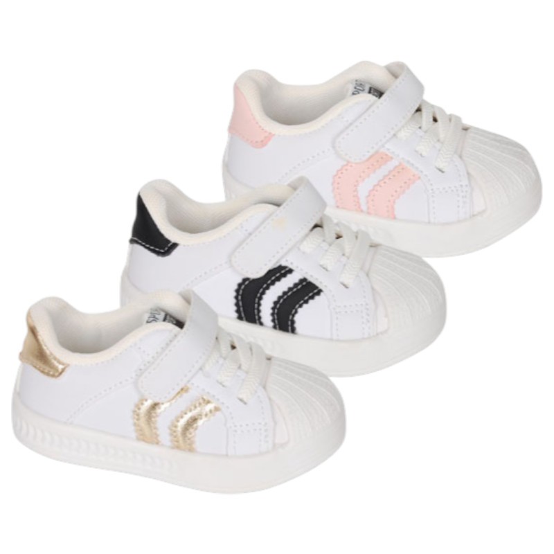 Zapatillas deportivas para niños en color blanco combinado con rosa, marino o color oro, con un estilo casual actual, ideales para el día a día por su gran comodidad y por su versatilidad, ya que son perfectas tanto para combinar con looks de calle como deportivos.